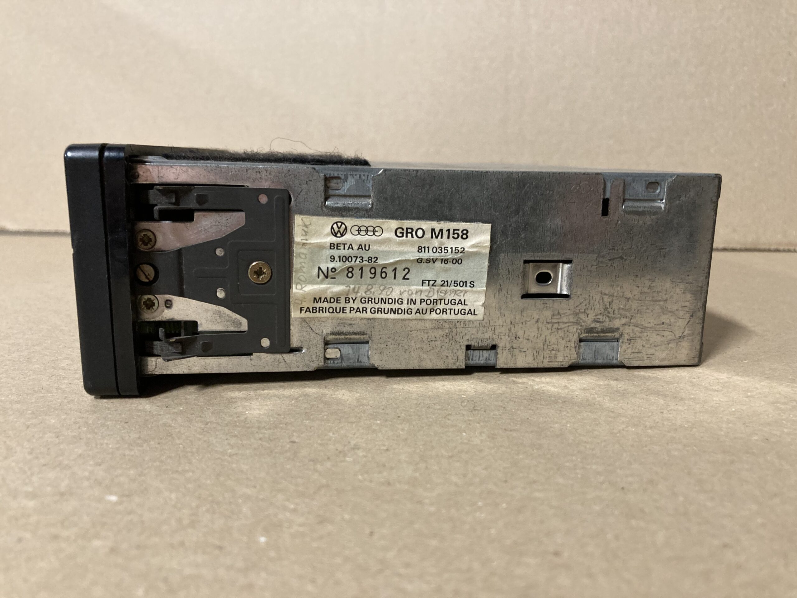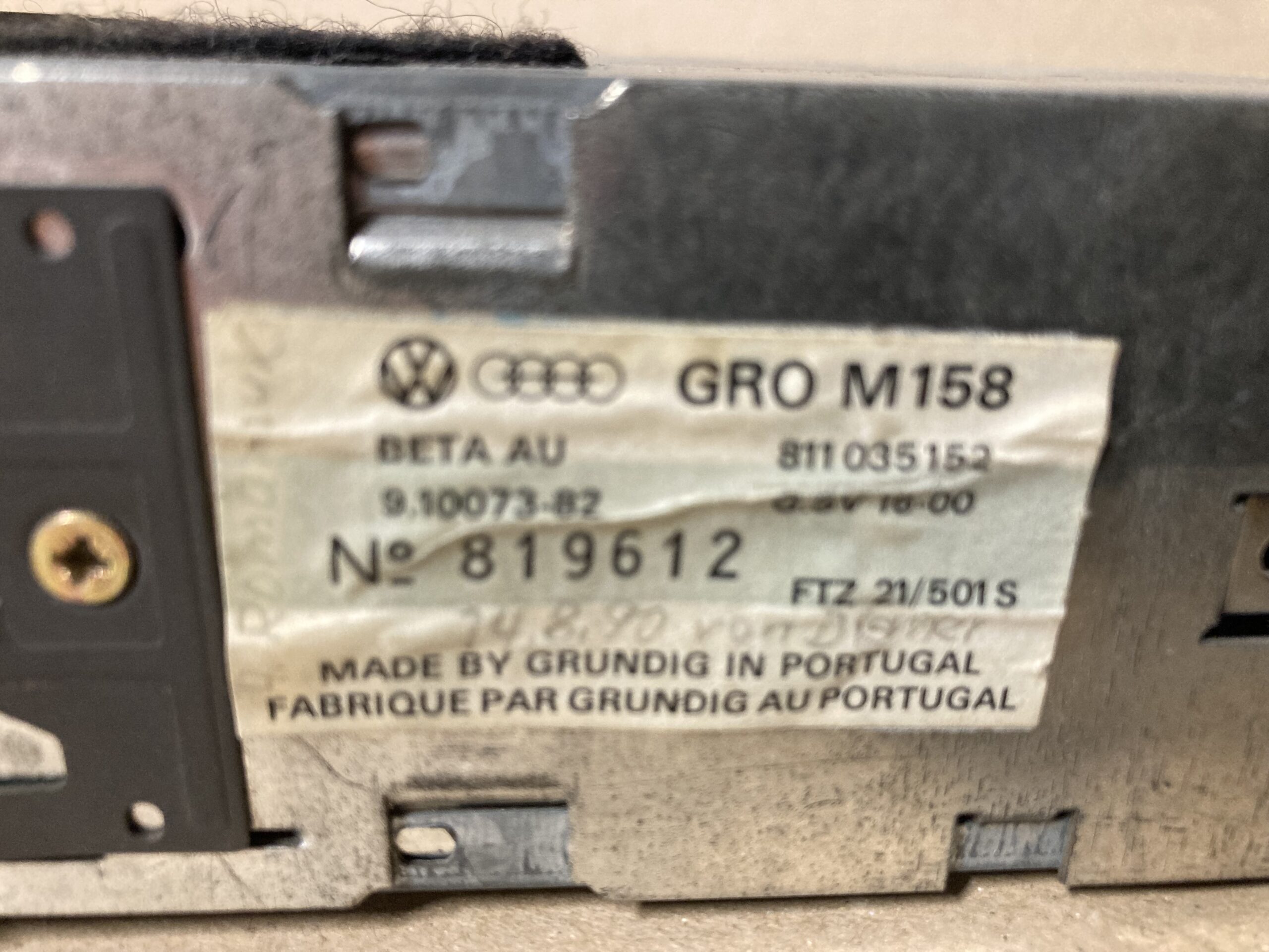 Deze, door Grundig geproduceerde radio werd nieuw geleverd in diverse Audi modellen, begin jaren negentig, en heeft prachtige amber kleurige verlichting. Past in een standaard radio uitsparing en een ISO aansluiting.